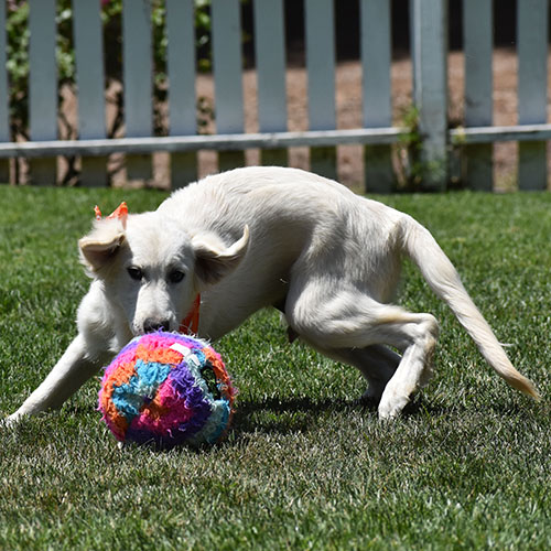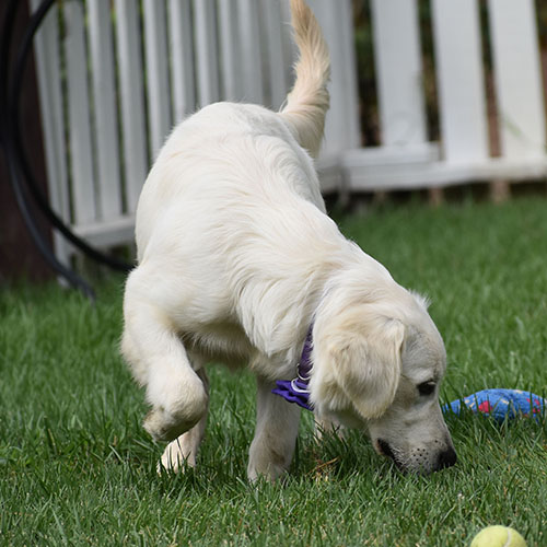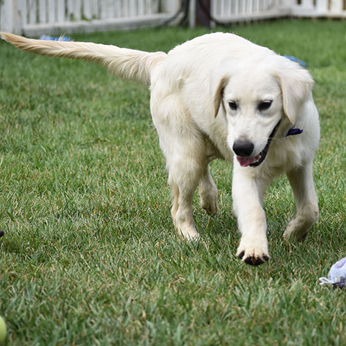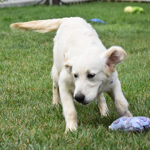 Adrian has been patient and very tolerant. He is taking well to the leash walking and we’d say he has more medium energy. This is a boy that enjoys playing in the water (splashing in sprinklers and buckets). Sweet and still a little Boring Adrian is a good dog and reminds us of our dear momma Kiki. We describe KiKi as, KiKi is Kiki, and that is Adrian. HE likes to warm up after a little bit of time. Adrian is alright on the leash for us, he can be a bit a of a shadow and follow us around. Adrian use to be a very confident and social pup but is now a little shy meeting new people. once he warms up he is a playful funny boy. Beautiful BLOND coat!
