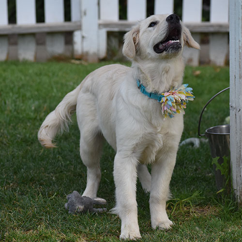 Beatrice is a firecracker at least for us! Most of our dogs fall into the low to medium energy so Beatrice we will call high. While she can be submissive she is an energetic happy GO GO GO girl. This Active pups is very social and loving enjoys meeting people and even happier when there are treats involved. She has great focus when it comes to treats for training. Beatrice is still working on her leash etiquette but overall her commands are great. Beatrice is our firecracker! She’s great if you have treats she will focus and give you the most attention. She has lots of energy and will need plenty of time to run it off and playing everyday with toys, other dogs, or her active family. She is very SOCAIL and loving. Beatrice is a great active attentive girl that will happily follow and pay attention for treats. GREAT FOR TRAINING! She can be top pack so best suited to a more submissive male dog if you are looking for a confident pup to help bring your current one out of their shell. She does play but is pretty calm for a pup. Over all a happy affectionate shadow that will gladly show off for something yummy. Beatrice likes to play and be with other dogs and really enjoys meeting people and being around people.