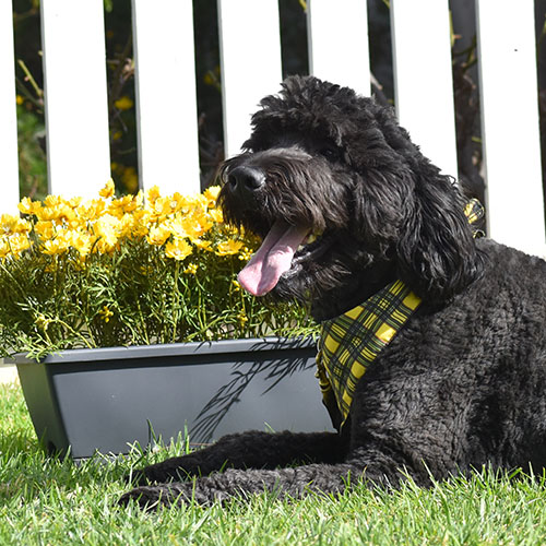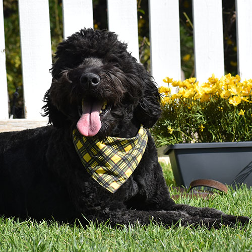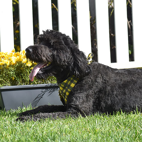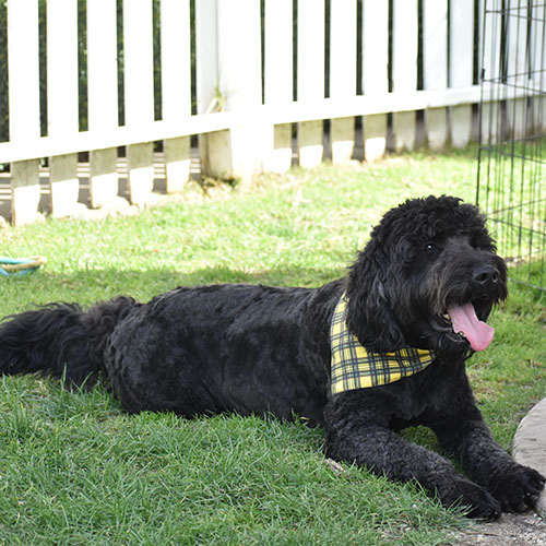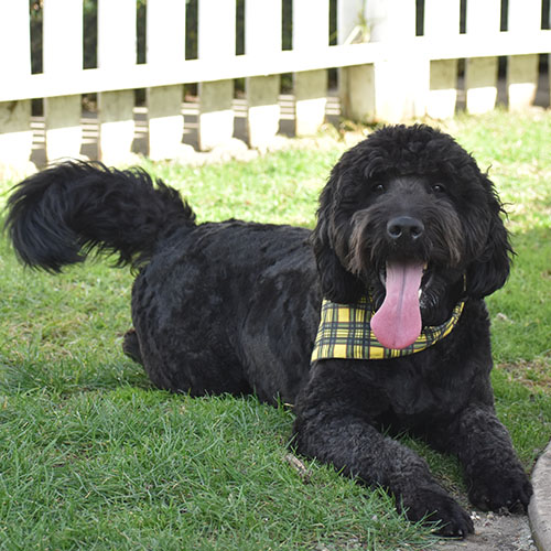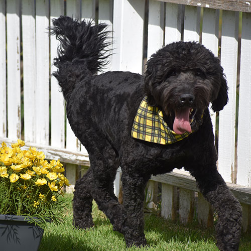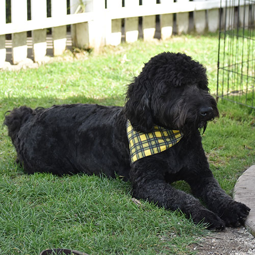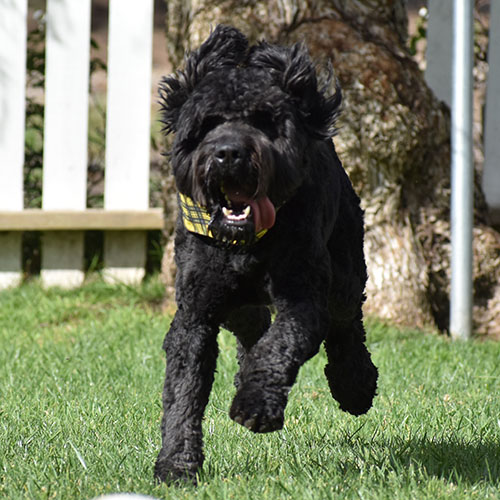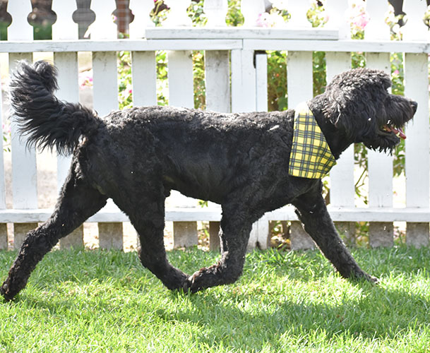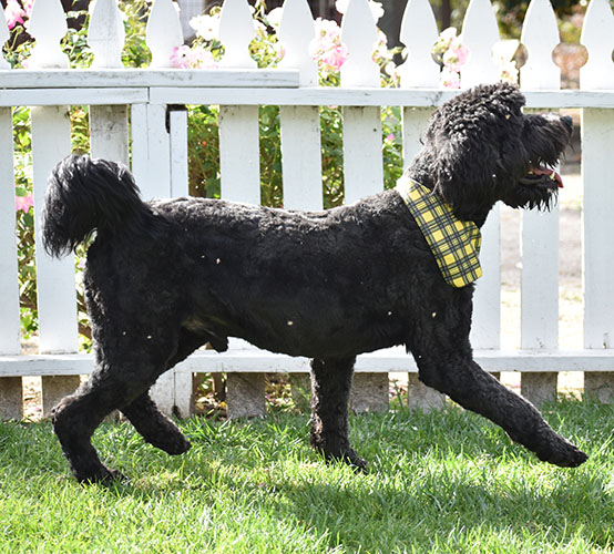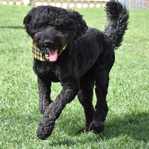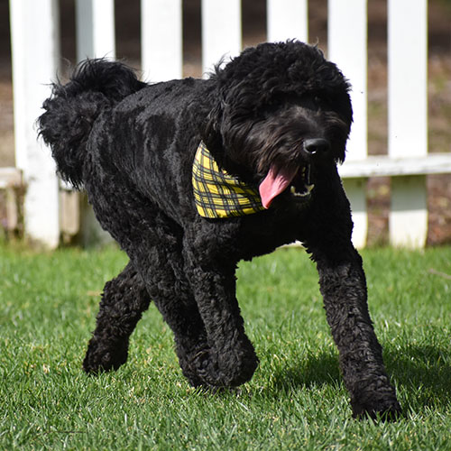 Bronx is a great dog! Bronx is the beautiful combination of relaxing inside and playing outside. He is great and minds all his Commands with treats. He loves to be petted and does great on our walks around town. He is great around other dogs and would love to be allowed on the bed/ couch. He does have that poodle energy so run and play fetch outside in the yard to burn that off. He is very reliable on his basic obedience and potty training. Bronx is a large boy and everything you expect in a puppy! He is friendly happy, loves to play fetch!