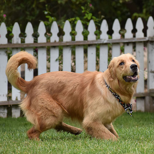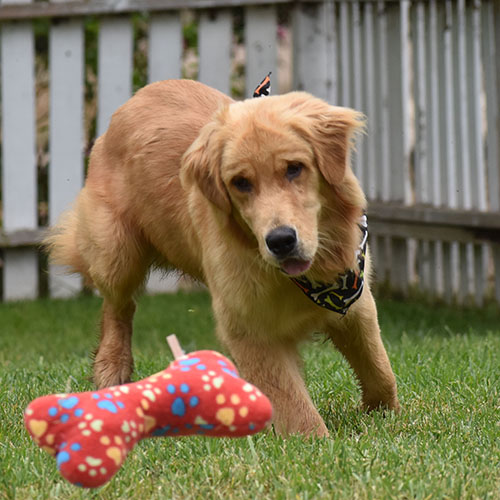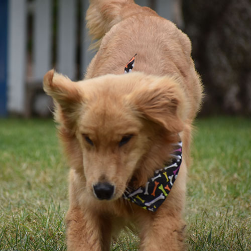 Colt is a Classic. He is Gold/ dark gold, he has a beautiful face, but takes after his daddy in all ways. Colt is small for our program, he is very dark, and submissive. While he shines with a sweet temperament that just wants love he needs to build confidence and learn to take treats properly. The nice part of a submissive dog they are pretty easy when it comes to being around the kids. The bummer is he’s most comfortable being a homebody. We are building his manners, obedience and confidence each day with practice.