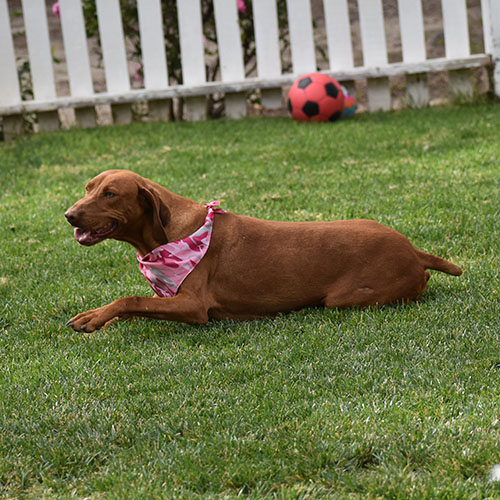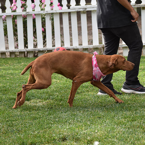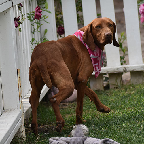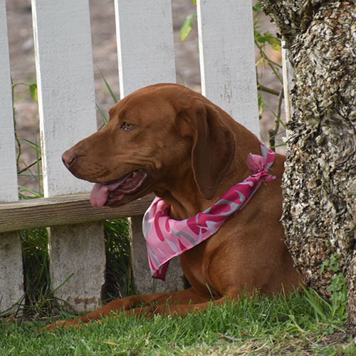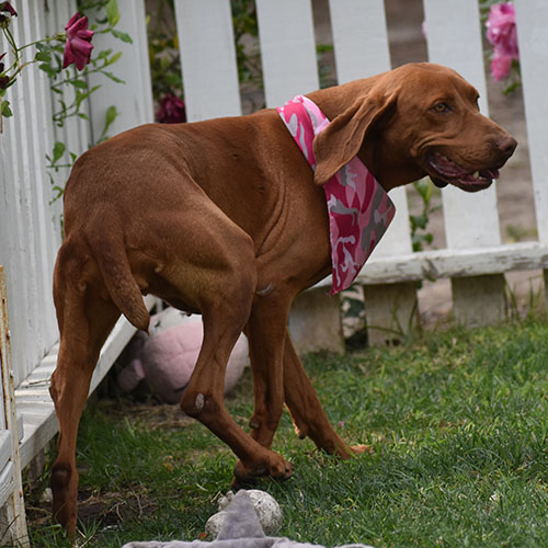 Dorothy is the shy quiet girl. It will take her time, love and patience in a new home to adapt. She does love scratches all over. She is pretty good walking on the leash a typical size for one of our girls right about 50lbs. She does keep to her self but has had no issues with other dogs. Dorothy has never blessed us with pups, but we are prepared to let her go to a great home and get spoiled!