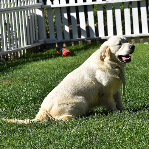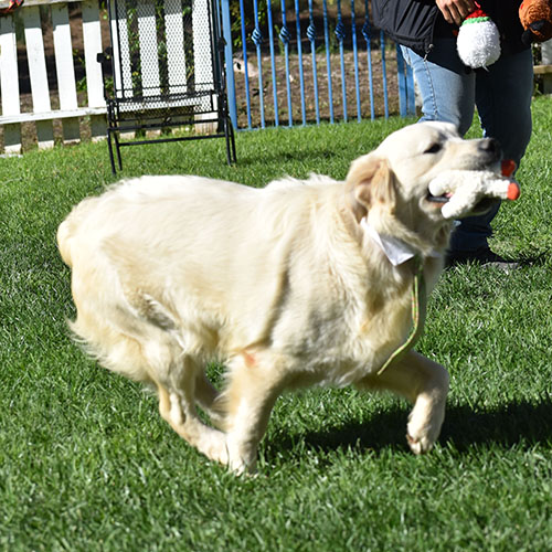 Hugo is a big boy that loves Lazy things. He is a calm settled beefcake that does like to play with toys but would rather just go on a walk or relax. He has been comfortable around the pool and on hot days he will play in the water buckets. Hugo’s favorite toy the KONg WUBBAS! He is a traditional Golden Meadows Big boy with a mellow disposition. HUGO has a stunning CREAM coat! Gorgeous thick build and strong headpiece. He is super sweet and patient with children due to a submissive side. Hugo loves his belly rubs! He can be a bit of a toy hog He is top pack and will like to be the boss at home, but was completely awesome playing dress up and being manhandled by the kids. A sweet boy. Hugo is estimated to be around 80-85 pounds