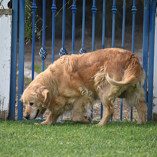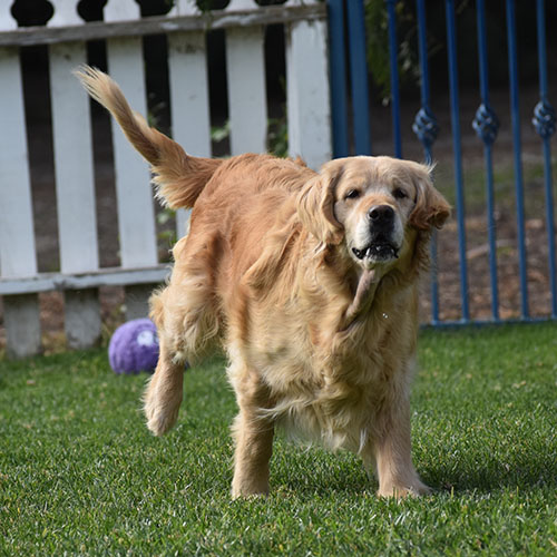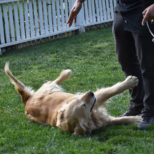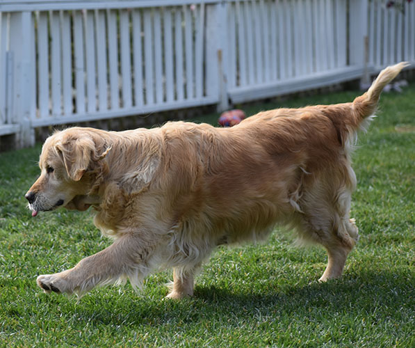 Lilly is from our Original lines gorgeous traditional golden coat sweet personality. She’s about 68lbs with a wonderful square head piece. Typical Mild energy playful and social girl. Such a sweet heart who loves her toys. She had been in training with us when she was a young pup so she will still work for treat would be an easy girl to train at home. She is a submissive girl and would willing roll over for belly rubs.