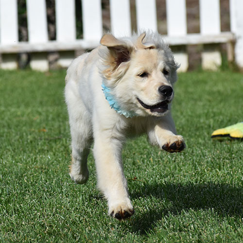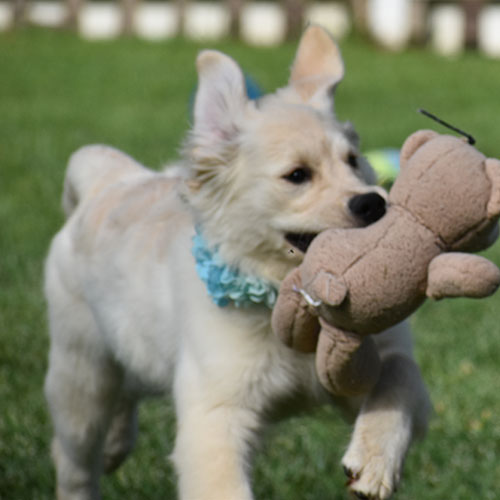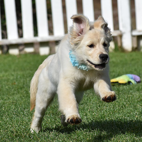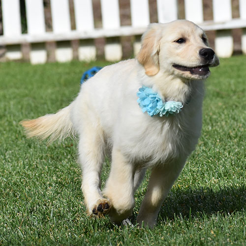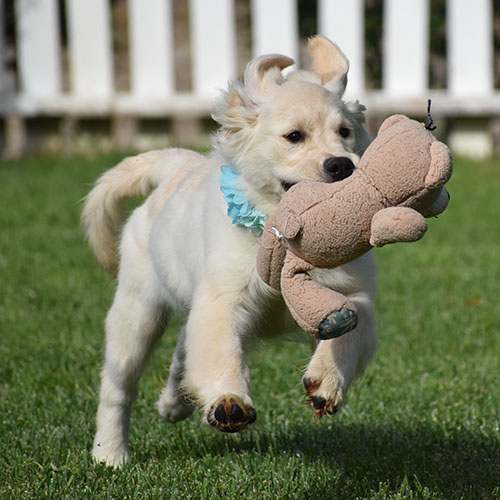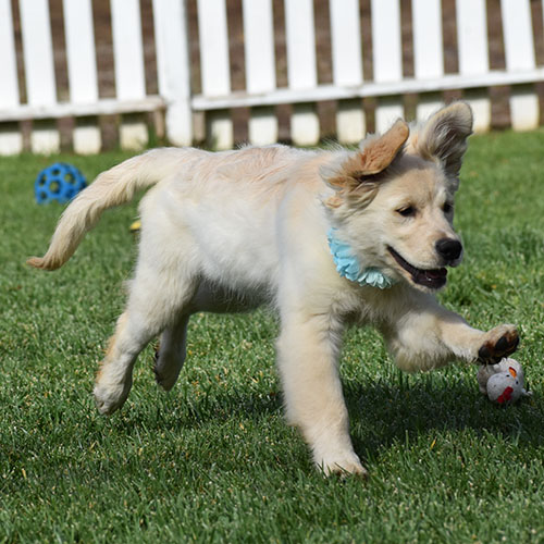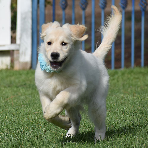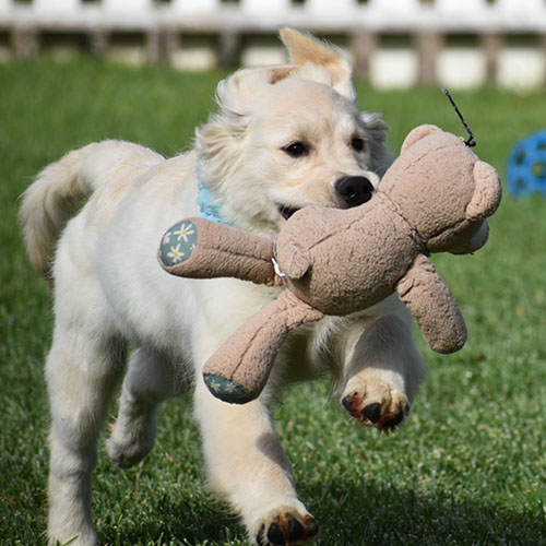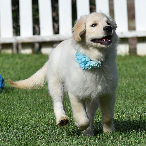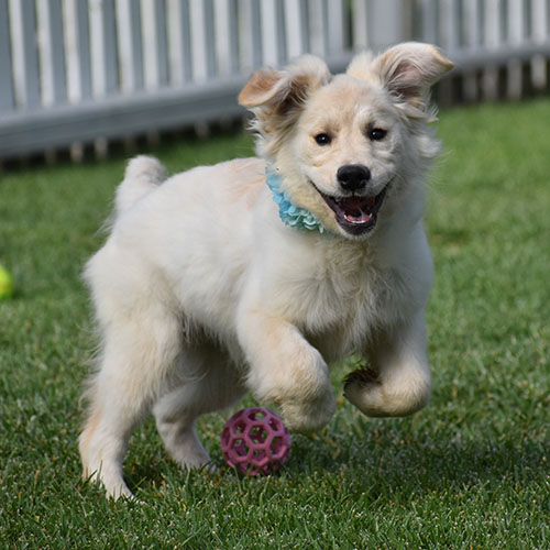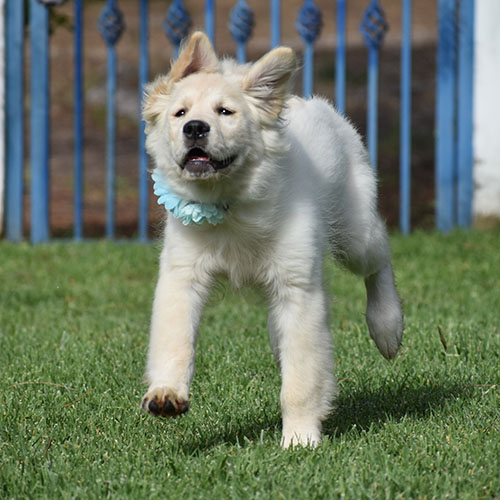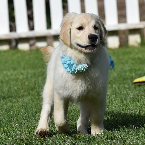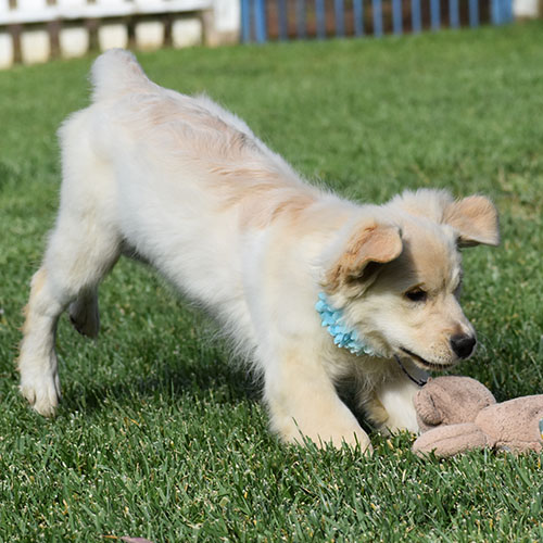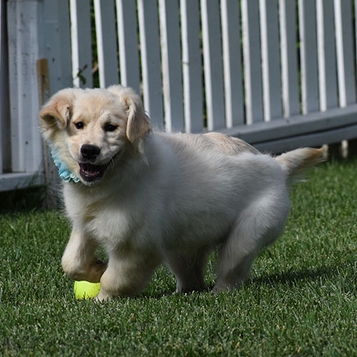 Mindy has that great Golden Retriever energy that would be able to keep up with you for play but is also happy to hang out with people. She loves people! Like most dogs she also loves food so while she may not like to practice her obedience she does for the yummy treats. She enjoys a variety of toys and is an active confident girl that will thrive with daily playtime.She’s a fun girly great for an active home that wants a dog to go on adventures.
