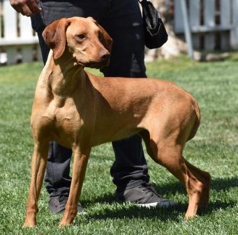 Nutmeg is a typical size mostly American line 45lbs. She is a great lovebug and super curious! Always wants to explore and check things out.