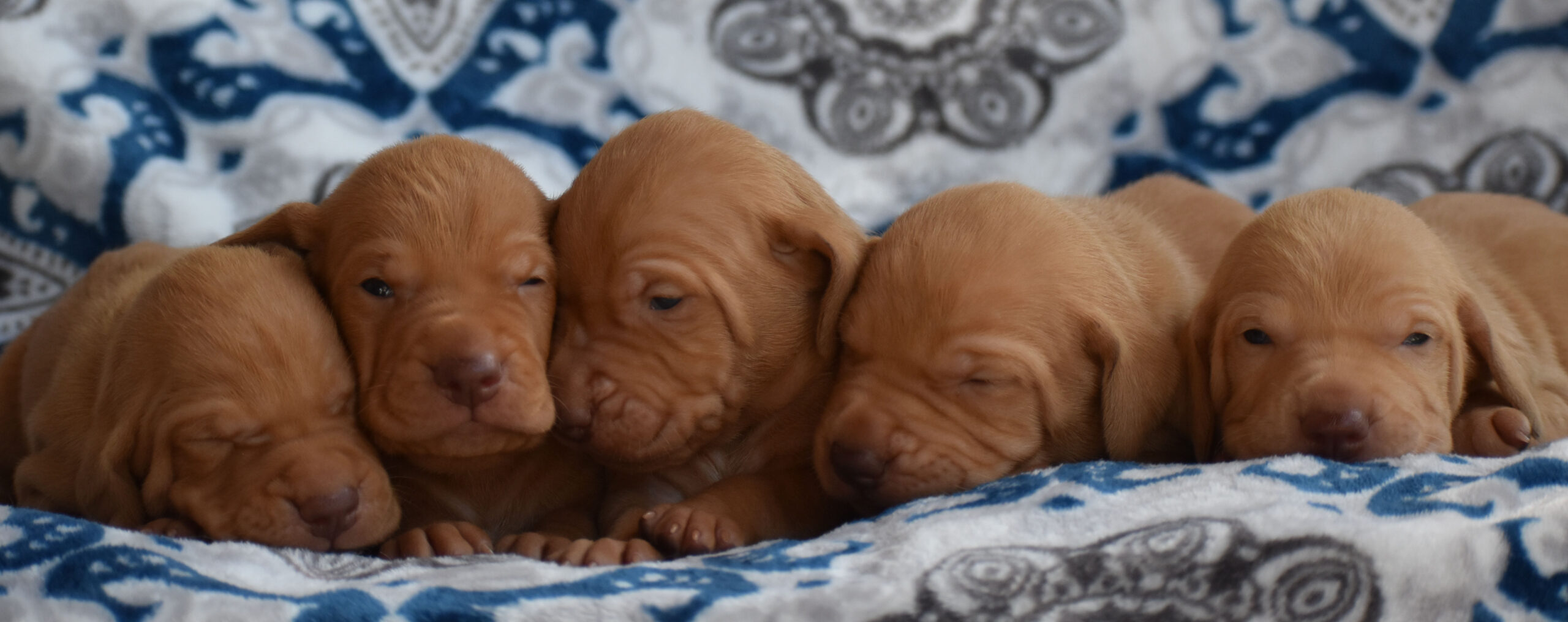 We have been breeding Vizlsas for more than 17 years now. Like our Golden Retrievers, our Vizsla puppies are bred for temperament, health & conformation. Our Vizsla puppies for sale, come with a minimum of 1 year health guarantee against genetic hip, heart & eye defects and we are happy to go an additional 2 years if our families continue to provide the High Quality food we already start our Vizsla puppies on. We show our adults in AKC & IABCA conformation. Most of the adults in our Vizsla breeding program are either champions or they are bred to a champion.